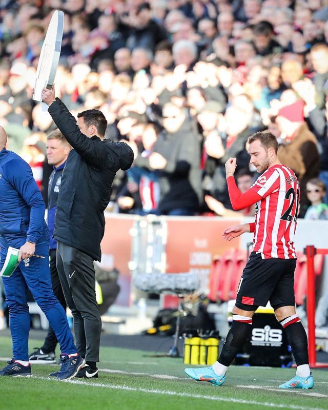从2021年6月12日欧洲杯B组首战,到2022年2月26日英超第27轮,时隔259天,从鬼门关重返绿茵场的埃里克森,终于出现在与纽卡斯尔的保级大战中。上半时两球落后,且少打一人的布伦特福德,在下半时伊始用埃里克森换下了同胞延森,全场响起热烈掌声,对于上次英超出场还要追溯到2020年1月的丹麦人而言,这是一次过于漫长的回归。