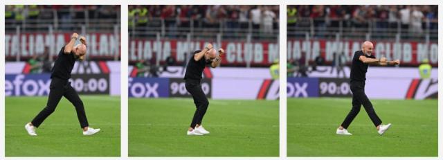 奥里吉三过球门而不入,姆希塔良的劲射划门而出,主裁吹响了终场哨,皮奥利之歌再次响起。怎么还是这首?这段来自上世纪末、带着鲜明时代感的音乐旋律,米兰球迷们或许永远也不会听腻。在接下来的日子里,皮奥利还会无数次在球迷的歌声中“火力全开”,或许会持续到下一次夺冠庆典也说不定。米兰主帅在赛后发布会上表示:“比赛结果令人开心,但我更为执教这支球队感到开心——我是个快乐的教练。”他说得当然没错。在当下的足球世界,有谁能比皮奥利更快乐?